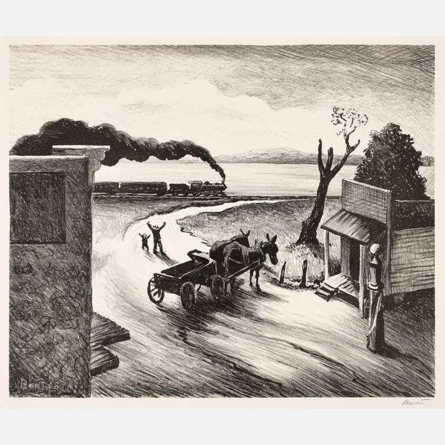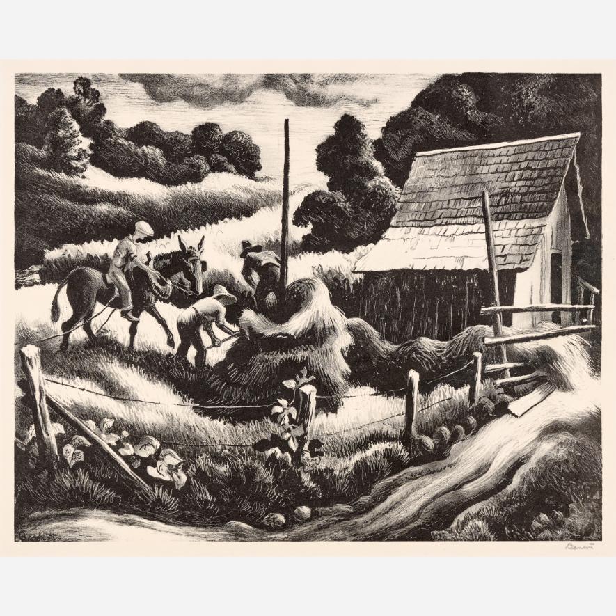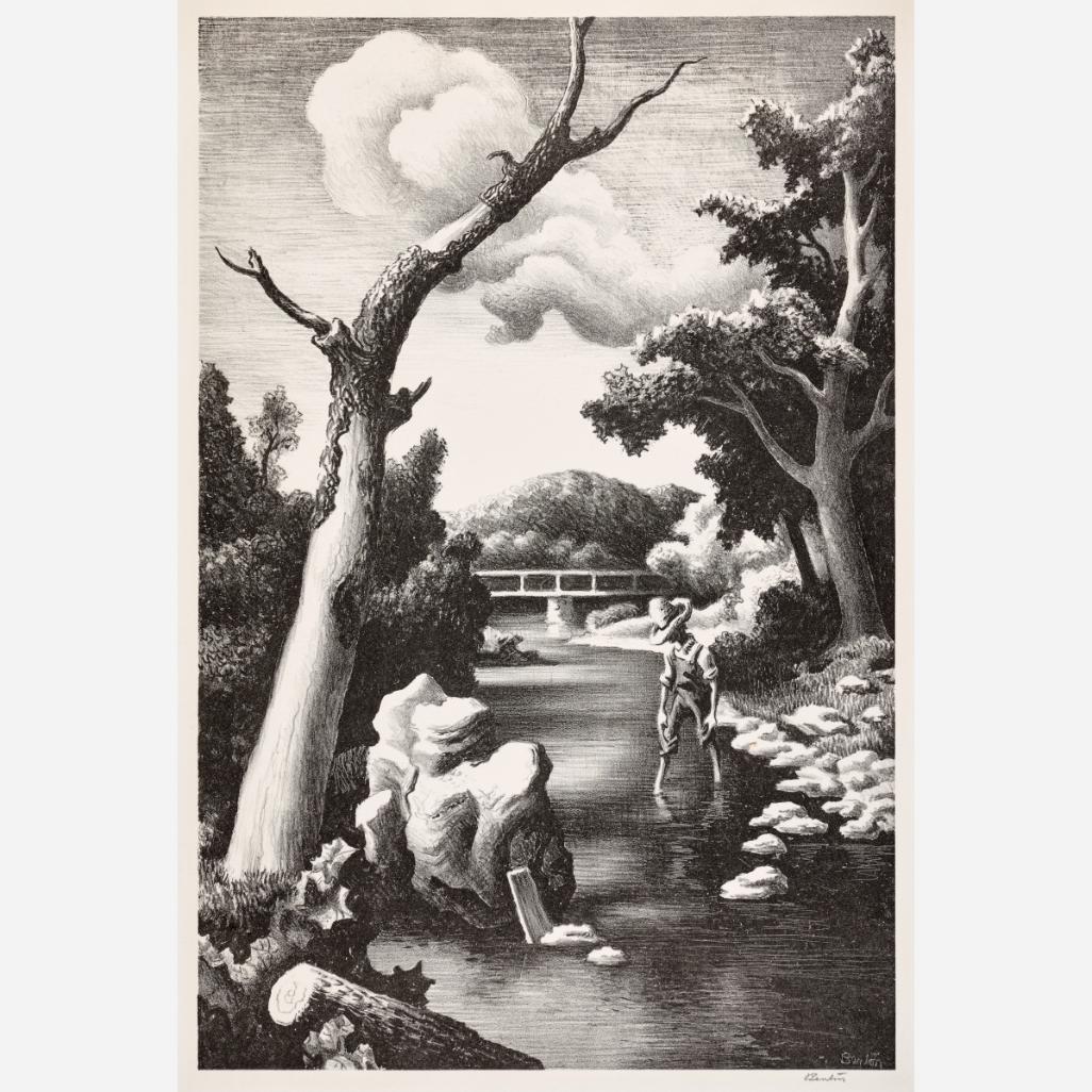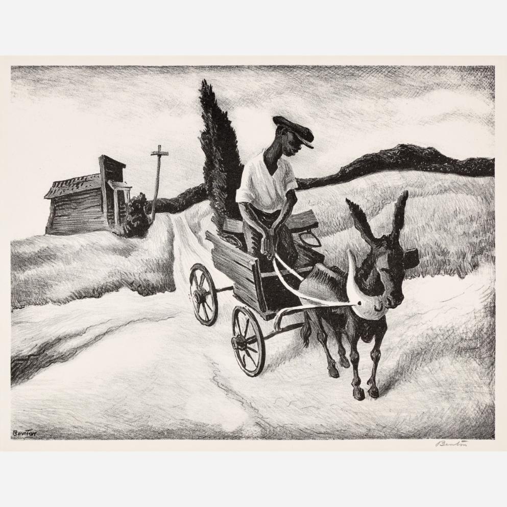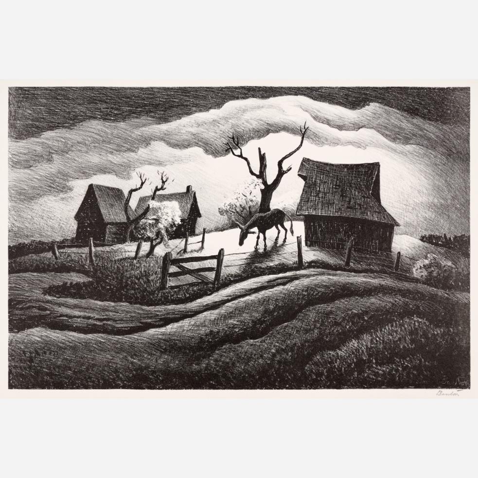 Circle Auction is proud to offer an exceptional collection of lithographs by artist Thomas Hart Benton, assembled by the late Dr. Arthur Elman, a Kansas City-based oncologist and former French consul to the Midwest. Arthur was a man of myriad interests, passions, and talents, so much so that Kansas City Magazine once deemed him the most interesting man in Kansas City. In 2014, Arthur and Carolyn Elman teamed with designer Kelee Katillac to rescue the historic Henry Blosser House in Malta Bend, Missouri, which had been declared the most endangered home in the state by Governor Jay Nixon. Through years of careful preservation, renovation, and care, the 1870s homestead was restored to its former glory, curated into a landmark of thoughtful interior design and a refuge for historical objects and fine art. Among the locally-minded art collection were over 50 lithographs by Missouri artist Thomas Hart Benton. In 2025, the Henry Blosser House was offered for sale, leaving this extensive collection of Benton imagery to find new quarters. We invite art enthusiasts everywhere to join us for this uncommon opportunity to add these outstanding American prints to your collection.