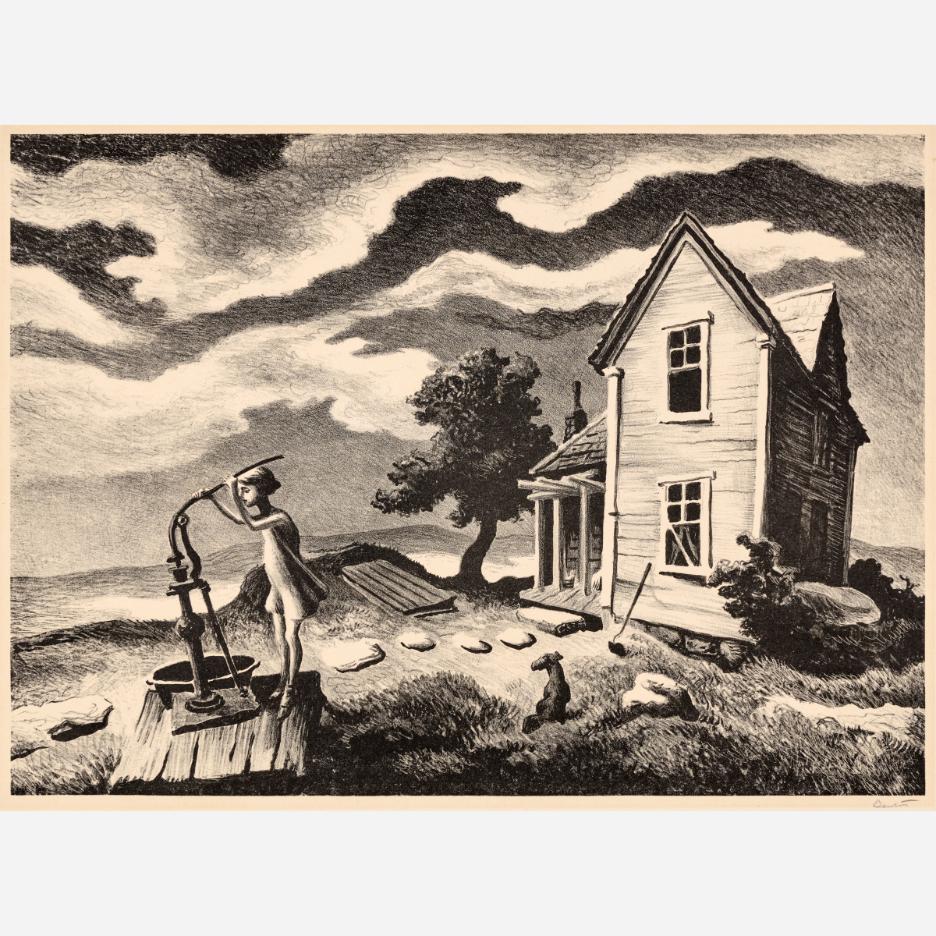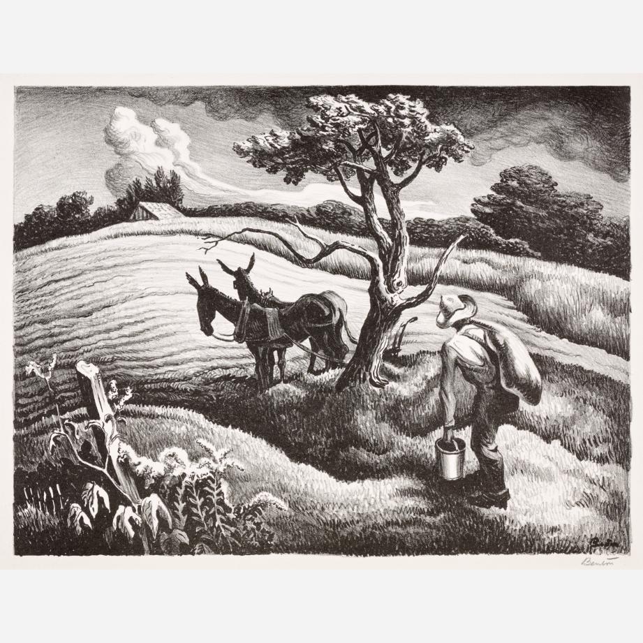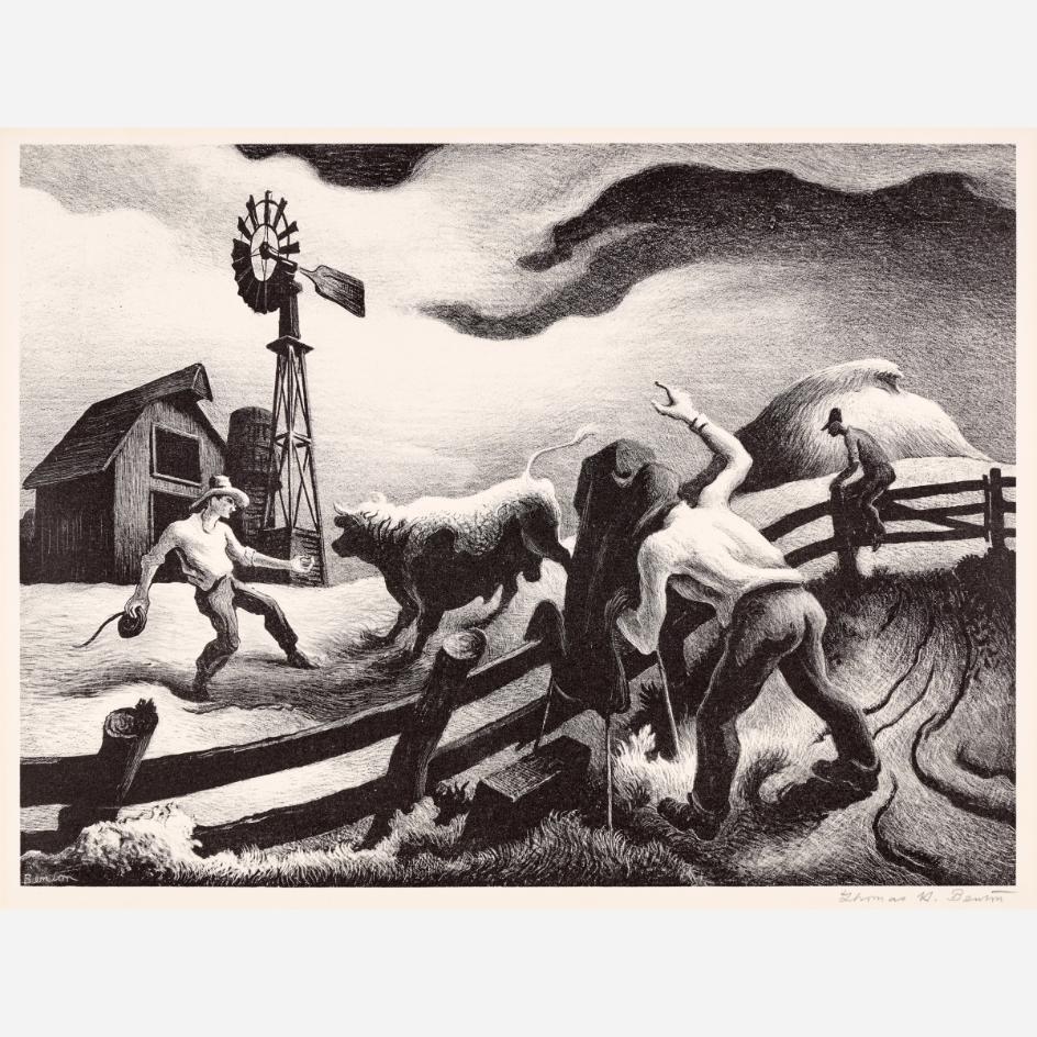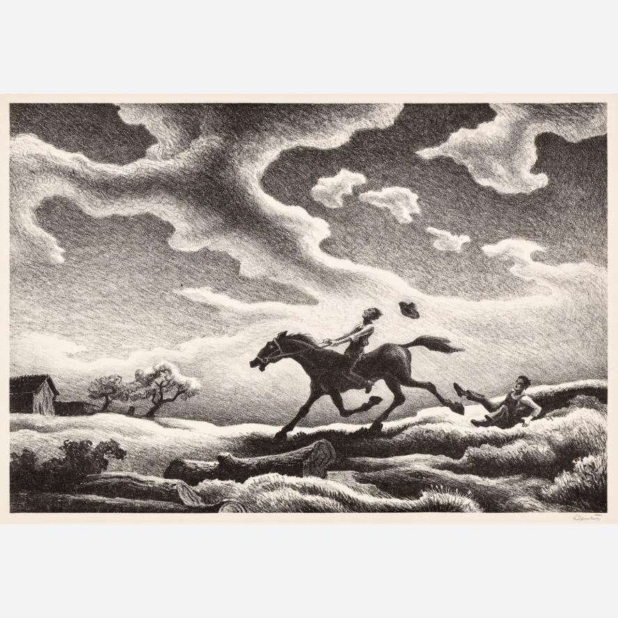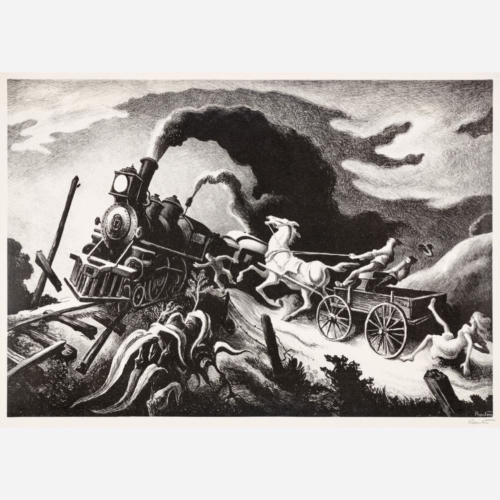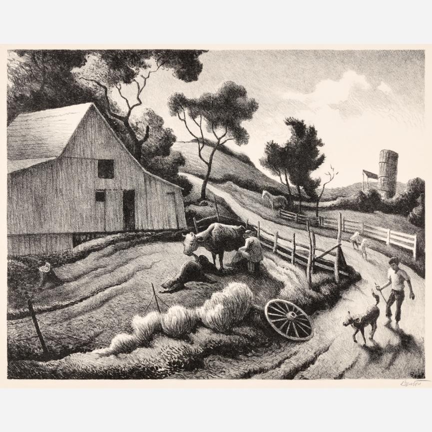 Circle Auction is proud to offer an exceptional collection of lithographs by artist Thomas Hart Benton, assembled by the late Dr. Arthur Elman, a Kansas City-based oncologist and former French consul to the Midwest. Arthur was a man of myriad interests, passions, and talents, so much so that Kansas City Magazine once deemed him the most interesting man in Kansas City. In 2014, Arthur and Carolyn Elman teamed with designer Kelee Katillac to rescue the historic Henry Blosser House in Malta Bend, Missouri, which had been declared the most endangered home in the state by Governor Jay Nixon. Through years of careful preservation, renovation, and care, the 1870s homestead was restored to its former glory, curated into a landmark of thoughtful interior design and a refuge for historical objects and fine art. Among the locally-minded art collection were over 50 lithographs by Missouri artist Thomas Hart Benton. In 2025, the Henry Blosser House was offered for sale, leaving this extensive collection of Benton imagery to find new quarters. We invite art enthusiasts everywhere to join us for this uncommon opportunity to add these outstanding American prints to your collection.