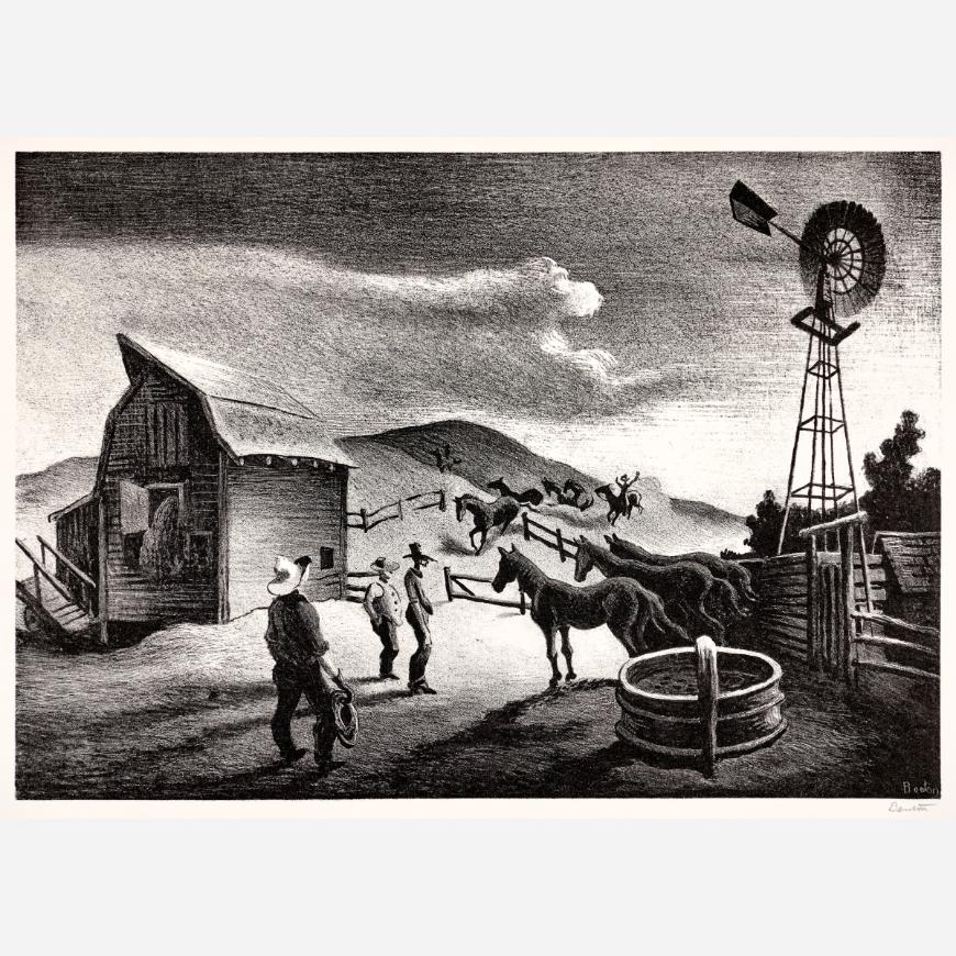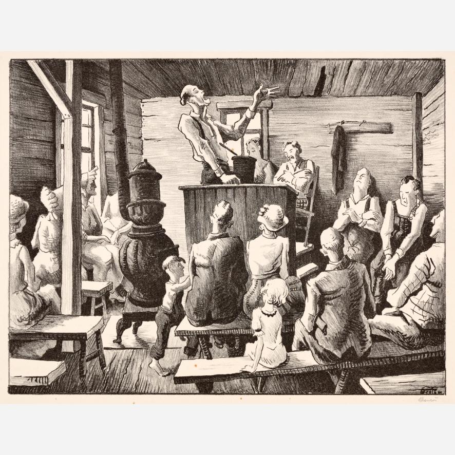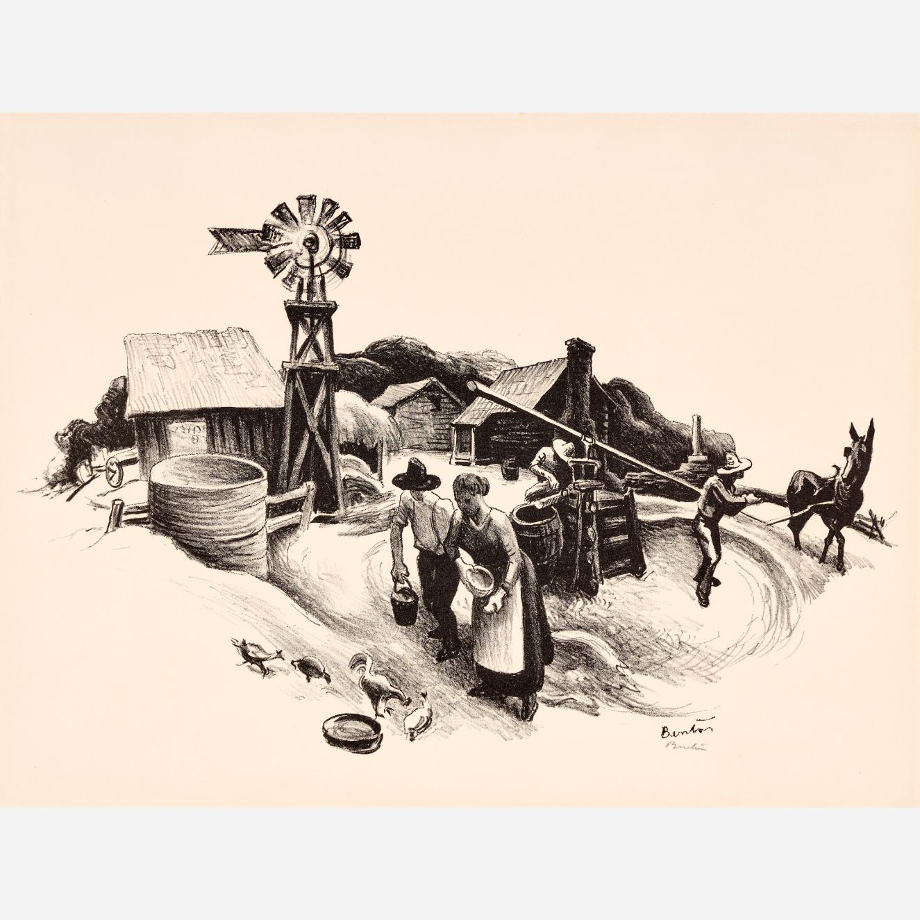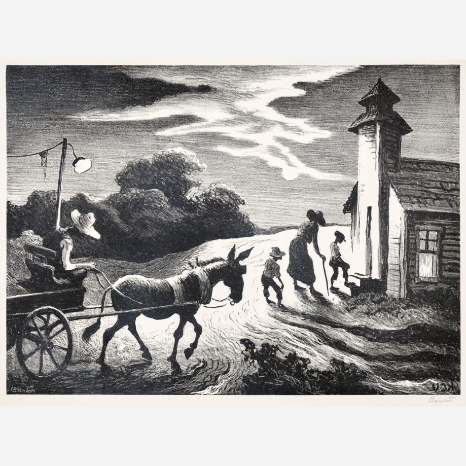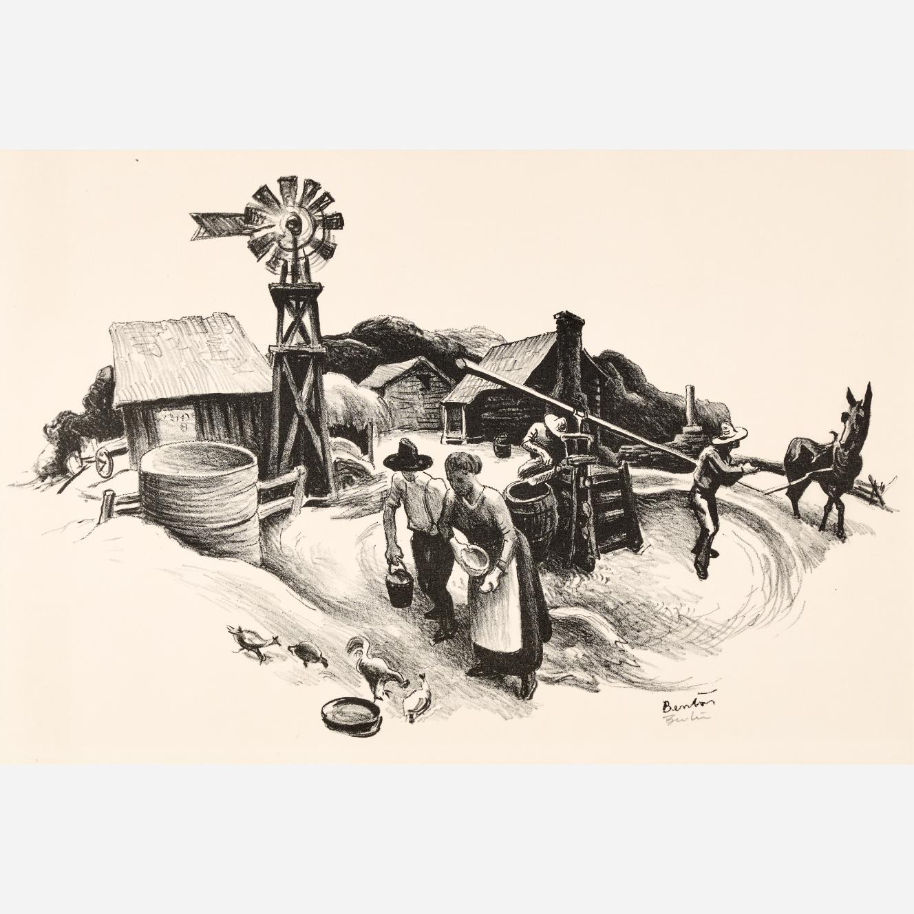 Circle Auction is proud to offer an exceptional collection of lithographs by artist Thomas Hart Benton, assembled by the late Dr. Arthur Elman, a Kansas City-based oncologist and former French consul to the Midwest. Arthur was a man of myriad interests, passions, and talents, so much so that Kansas City Magazine once deemed him the most interesting man in Kansas City. In 2014, Arthur and Carolyn Elman teamed with designer Kelee Katillac to rescue the historic Henry Blosser House in Malta Bend, Missouri, which had been declared the most endangered home in the state by Governor Jay Nixon. Through years of careful preservation, renovation, and care, the 1870s homestead was restored to its former glory, curated into a landmark of thoughtful interior design and a refuge for historical objects and fine art. Among the locally-minded art collection were over 50 lithographs by Missouri artist Thomas Hart Benton. In 2025, the Henry Blosser House was offered for sale, leaving this extensive collection of Benton imagery to find new quarters. We invite art enthusiasts everywhere to join us for this uncommon opportunity to add these outstanding American prints to your collection.